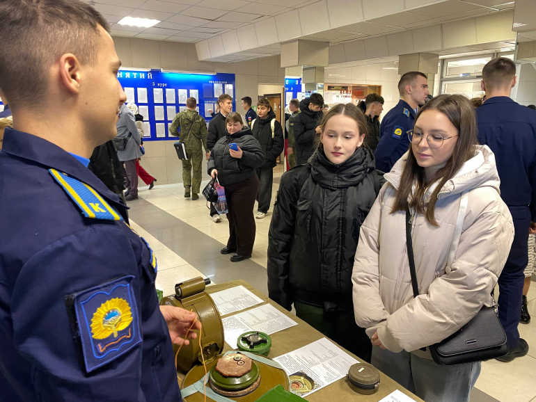 После теоретической части посетители отправились на экскурсию по училищу. Гости побывали в спортивном зале, заглянули на учебные кафедры, осмотрели тренажерные комплексы и комплекс парашютно‑десантной службы (ПДС). Не оставили равнодушными лазерный тир и музей училища - многие задержались там, чтобы подробнее изучить экспонаты.