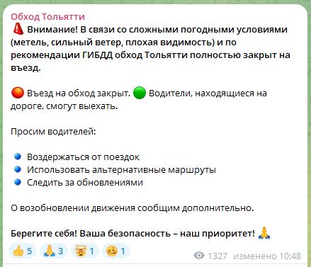 - Внимание! В связи со сложными погодными условиями (метель, сильный ветер, плохая видимость) и по рекомендации ГИБДД обход Тольятти полностью закрыт на въезд. Въезд на обход закрыт. Водители, находящиеся на дороге, смогут выехать, - говорится в сообщении.
