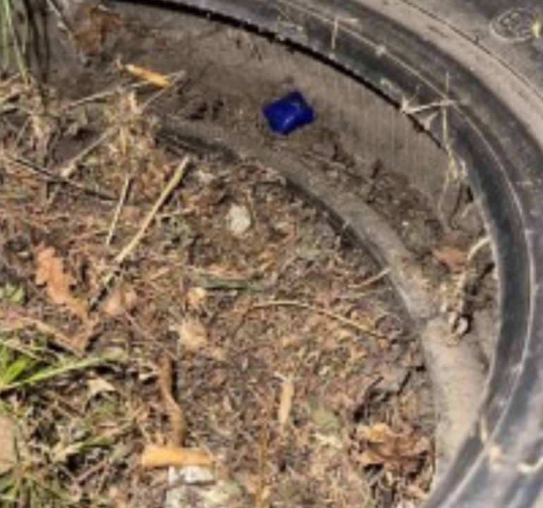 Позже при обследовании территории, примерно в четырех метрах от места задержания девушки, она указала полицейским на клумбу в виде покрышки автомобильного колеса куда, с целью последующего сбыта, положила сверток с наркотическим средством.