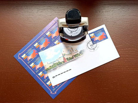 Почта России 7 мая выпустила марку, посвященную вступлению в должность президента РФ Владимира Путина. На почтовой марке изображены карта Российской Федерации и штандарт главы государства.