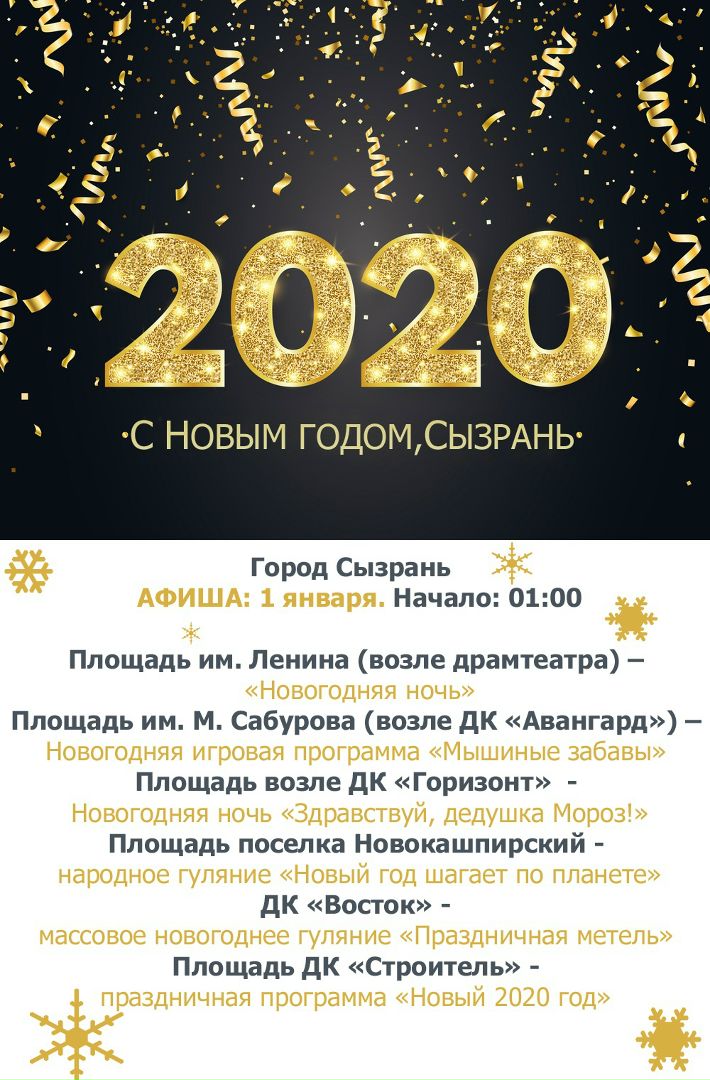 Новогодние программы возьмут старт 1 января, в 1:00. Хотя, наверняка многих сызранцев бой курантов застанет на улице, в кругу друзей.