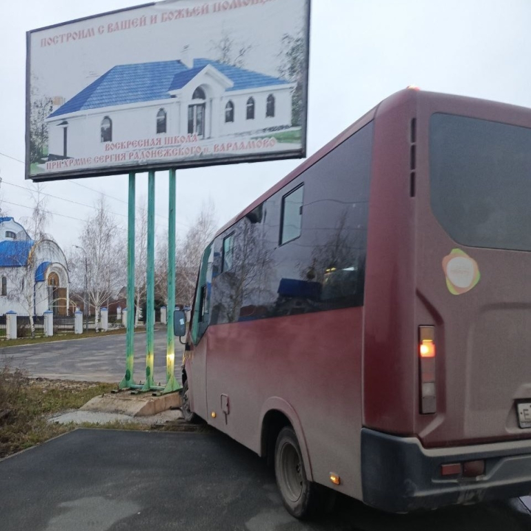 Водитель микроавтобуса врезался в дорожный знак «Автобусная остановка» около храма Сергия Радонежского.