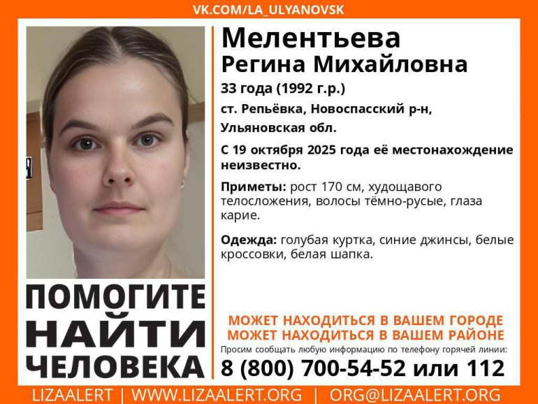 33-летняя Регина Мелентьева пропала в Новоспасском районе Ульяновской области в 20-ти километрах от Сызрани.