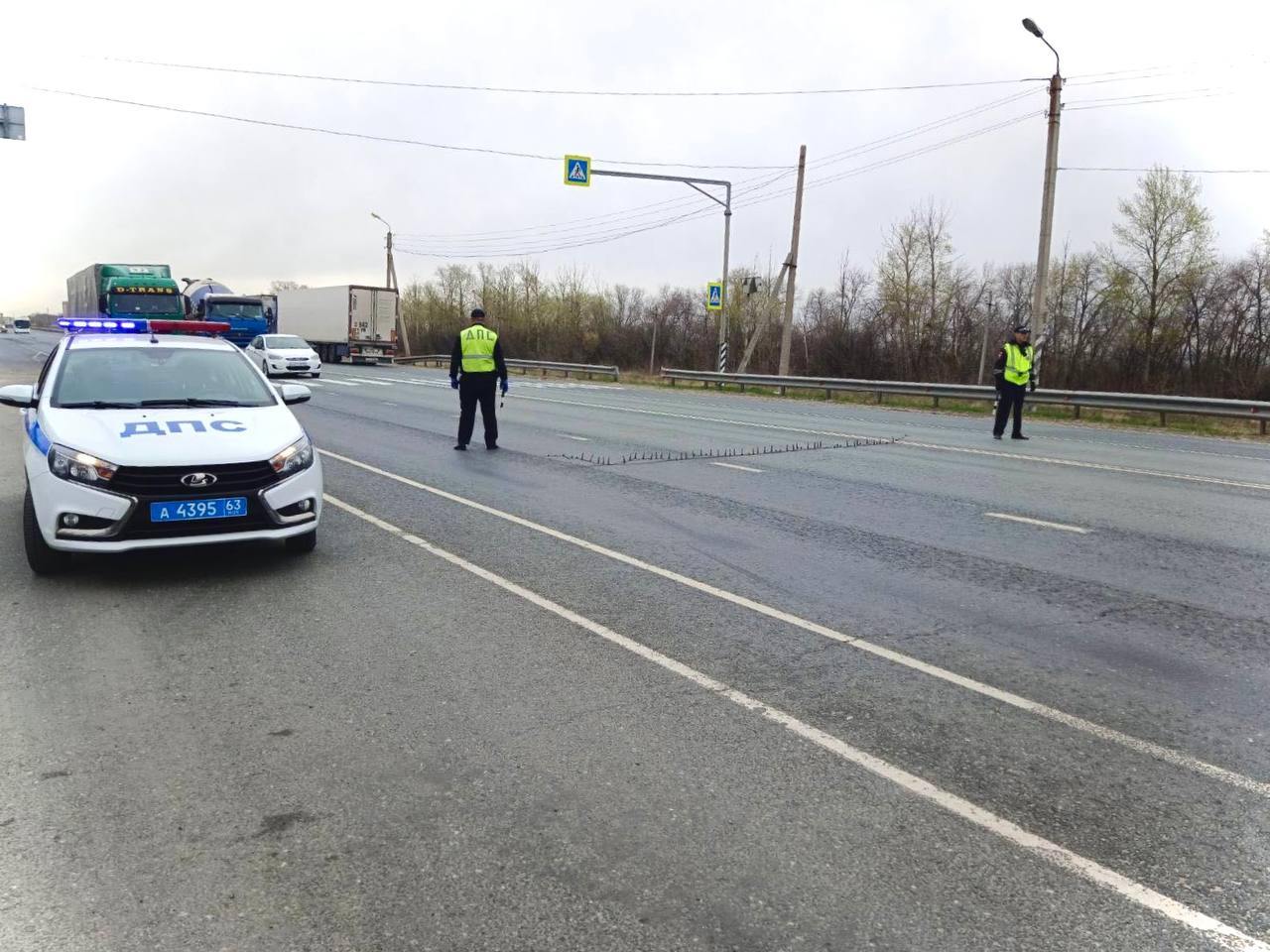 Инспекторы ГИБДД Сызрани выпустили «ежей» перед автомобилями на трассе М-5. Так называют специальное противоавтомобильное заграждение - металлическая лента с шипами. Правоохранители провели тренировку по применению спецсредства принудительной остановки машин. В полиции отметили, что их применяют лишь в исключительных случаях, когда водитель отказывается добровольно остановиться и игнорирует требования сотрудников.