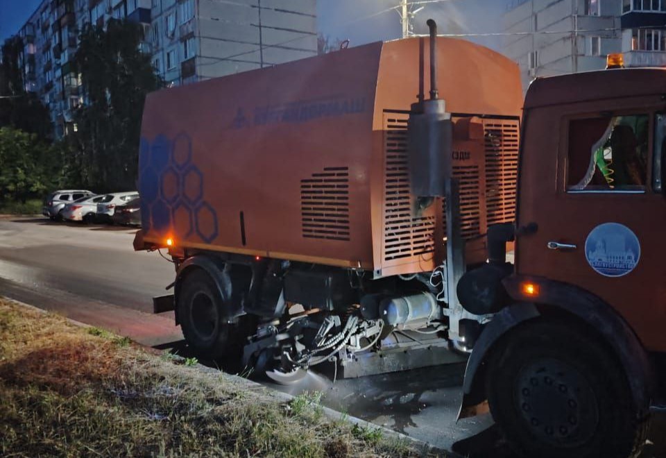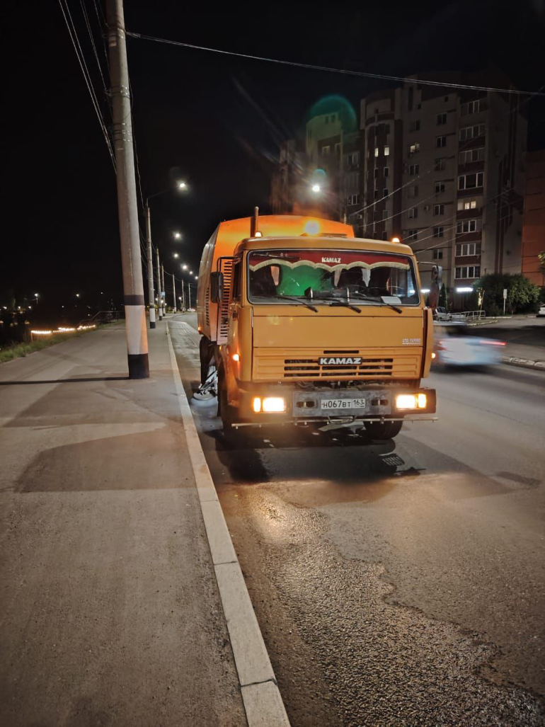 В Сызрани коммунальные службы приступили к влажной уборке на дорогах. Специалисты МКУ «Благоустройство» с помощью подметально-уборочной машины проводят очистку проезжей части ночью, пока все горожане спят.