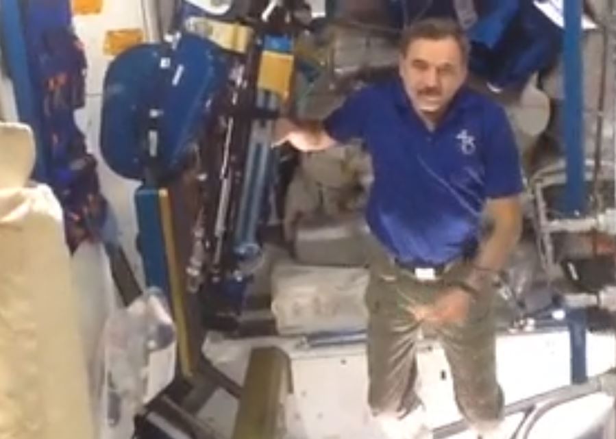 На этот раз в фокусе внимания Михаила Борисовича стал космический тренажерный зал. Как отметил Корниенко, тренажерка «помогает космонавтам не приехать на Землю в виде «холодца, полежавшего на солнце».