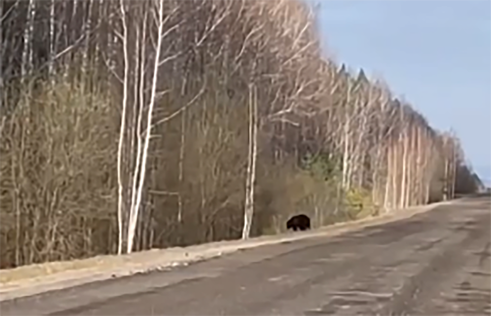 На видео, которое было снято из салона автомобиля, можно заметить, как мишка переходит через дорогу и быстро уходит в сторону лесополосы. Судя по всему, животное проснулось от спячки и теперь осматривает свое место обитания и ищет провиант.