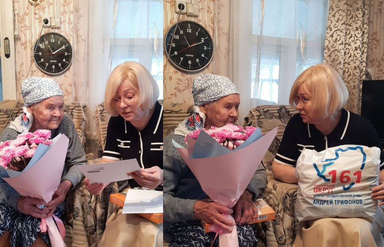 С вековым юбилеем Валентину Алексеевну пришла поздравить глава Октябрьска Александра Гожая. Мэр зачитала поздравительный адрес от президента Российской Федерации Владимира Путина, а также вручила поздравления от депутата Государственной думы Андрея Трифонова.