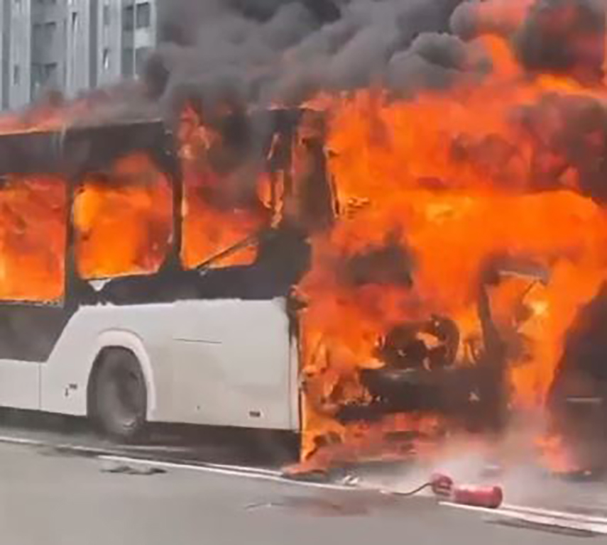 Сначала пытались справиться с огнём с помощью огнетушителей, однако все было бесполезным. Пламя охватило весь автобус, который превратился в огромный костер. Клубы чёрного дыма были видны из разных районов города.