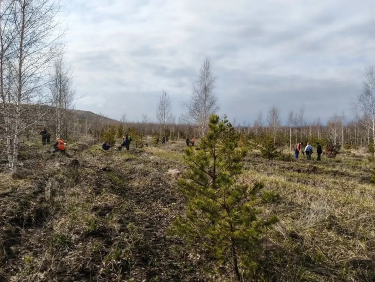 Волонтеры высадили тысячу саженцев сосны на площади 1 га.