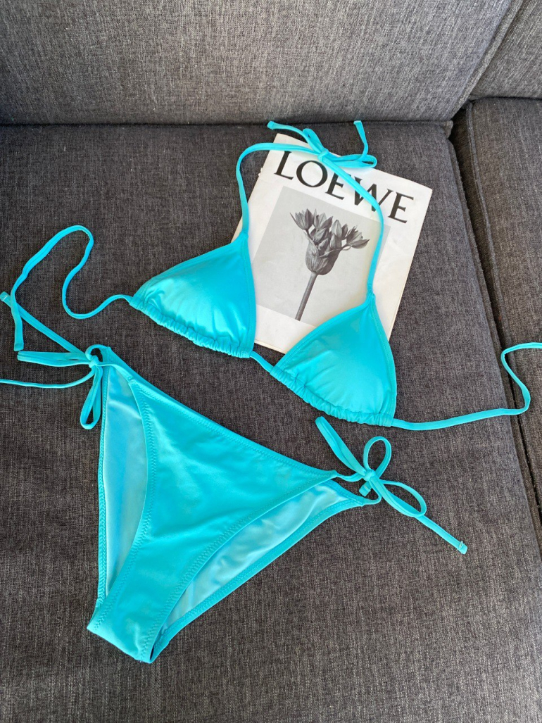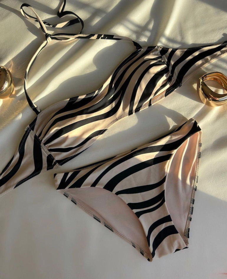 Не выходят из моды и купальники-бикини на завязках, которые подходят для любого типа фигуры. Верх от купальника можно завязывать по-своему, переворачивая лиф и перекрещивая завязки разными способами, а низ подстроить под себя - завязать потуже или наоборот свободнее. Ультрамодным этот фасон считают ещё и потому, что он оставляет большие участки кожи свободными, что даёт возможность получить более ровный загар.
