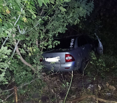 Разбитую легковушку спасатели вытащили из кустов.