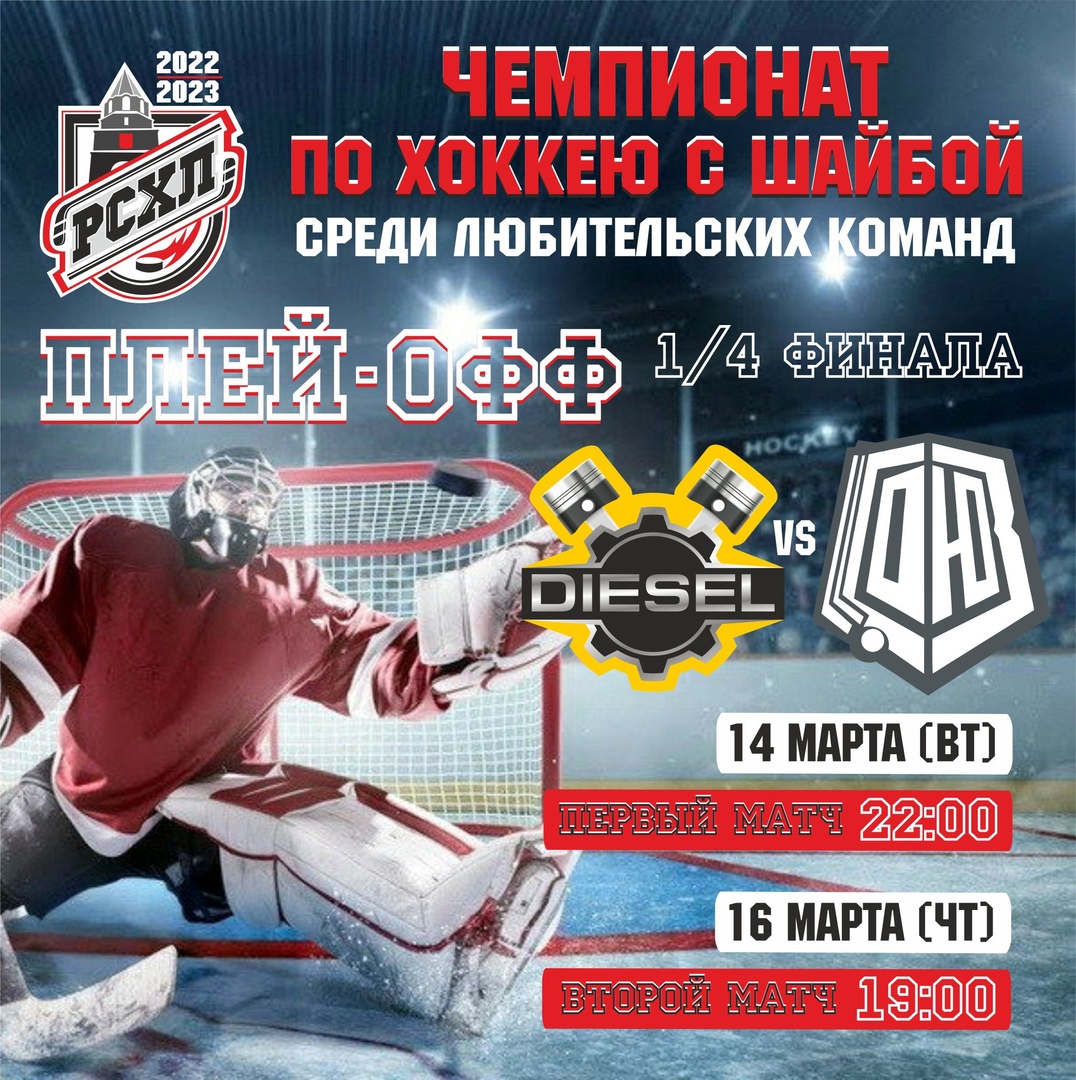 И уже на этой неделе стартует серия плей-офф чемпионата РСХЛ. Со стадии четвертьфинала борьбу начнут два аутсайдера первенства, «Дизель» и «Союз». Первый матч между этими коллективами состоится уже сегодня, 14 марта, в 22:00 в ЛДС «Роснефть Арена». Второй матч пройдет в четверг, 16 марта, в 19:00 на этой же площадке. Цена билетов – 40 рублей.
