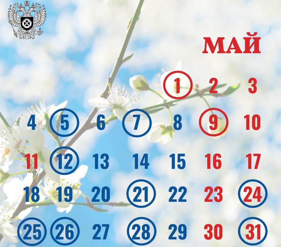 Роструд опубликовал календарь выходных и праздников на май 2026 года. В последнем месяце весны россиянам предстоит ходить на работу 19 дней и 12 дней отдыхать. Для сравнения, в апреле было 22 рабочих дня и всего восемь выходных, а в марте - 10 выходных и 21 рабочий день.