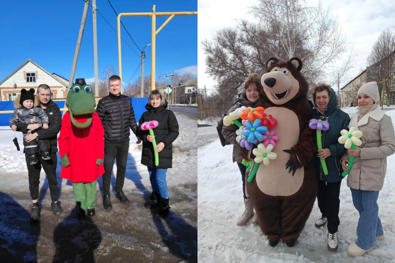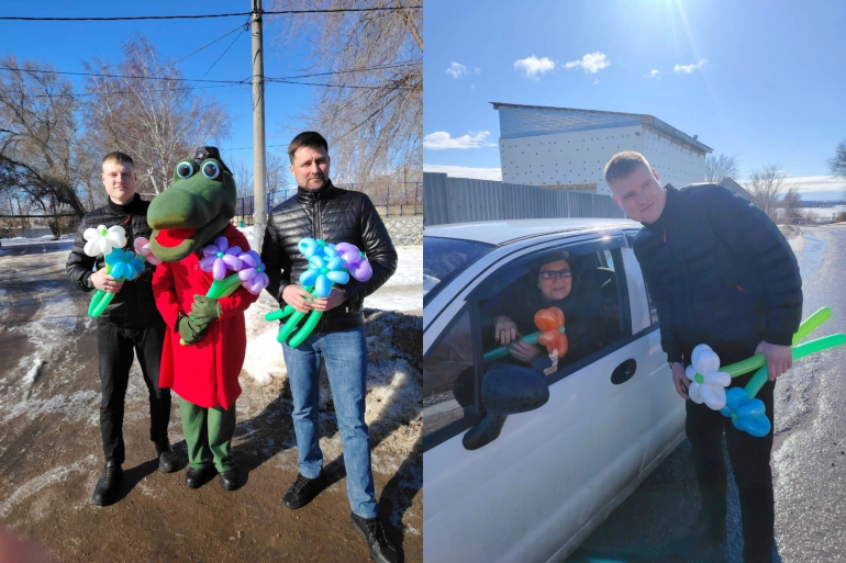 В Международный женский день 8 марта Гена и Мишка поздравляли всех женщин, девушек и девочек с праздником и дарили им цветы. В этом сказочным персонажам из Культурно-досугового комплекса «Октябрьский» помогали директор УК «Символ» Алексей Тараканов и руководитель УК «Тёплый дом» Иван Горбунов. Они совместно 8 марта провели в городе веселую акцию «Дарите женщинам цветы» в рамках проведения Международного женского дня.