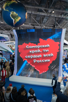 «Самарский край – ты сердце всей России!», - под таким девизом Самарская область презентовала программу первого дня участия в выставке. Перед посетителями экспозиции предстало захватывающее зрелище: они смогли увидеть виртуальный запуск ракеты-носителя, полет и выход на околоземную орбиту космического корабля и уже с его борта, с космической высоты, очертания Самарской области, напоминающие форму сердца.