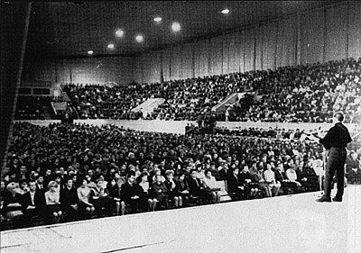 Исторической фотографией с концертной программы поделился со своими подписчиками телеграм-канал «Старая Самара». На кадрах видно, как переполненная арена с воодушевлением слушает выступление выдающегося артиста прошлого столетия.