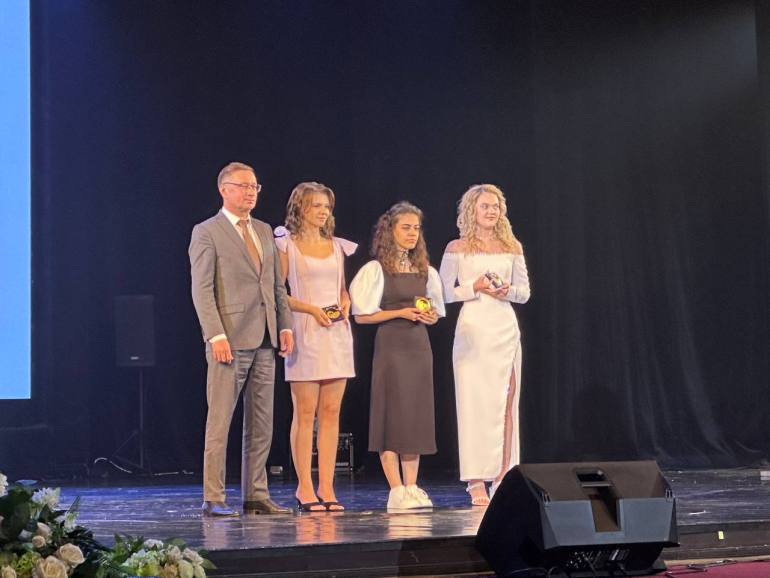 Он наградил троих выпускников колледжа медалями губернатора региона «За особые успехи в профессиональном образовании».