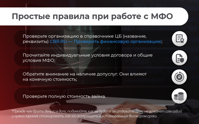 Полезные советы при работе с микрофинансовыми организациями.
