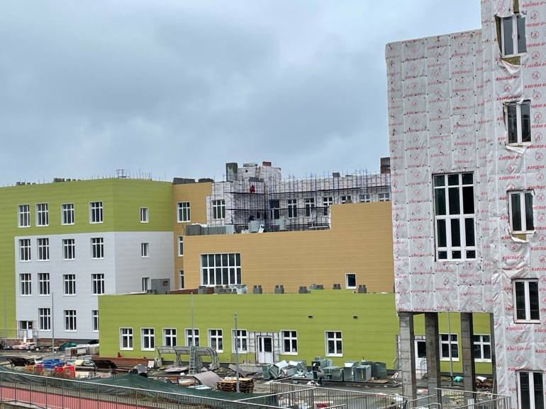 В настоящее время строительные работы выполнены на 80 процентов. Ведутся отделочные работы, подключается отопление, благоустраивается территория. Уже закуплена мебель и оборудование, но многое ещё предстоит сделать, в том числе - исправить полученные замечания к выбору цвета стен и срокам строительства.