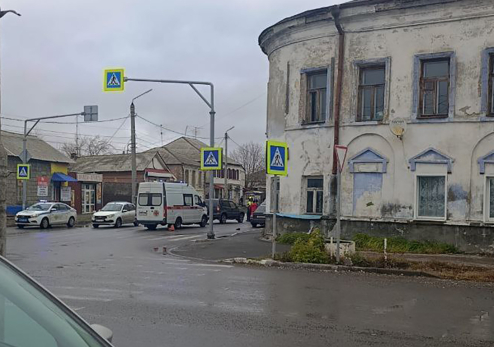 Наезд на человека случился в районе пешеходного перехода. На место прибыл автомобиль скорой помощи. Состояние пострадавшего пешехода неизвестно.