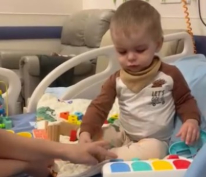 На кадрах, которые выложила мама Димы, видно, что мальчик в палате. Он с интересом играет с игрушкой, сидя на больничной кровати.