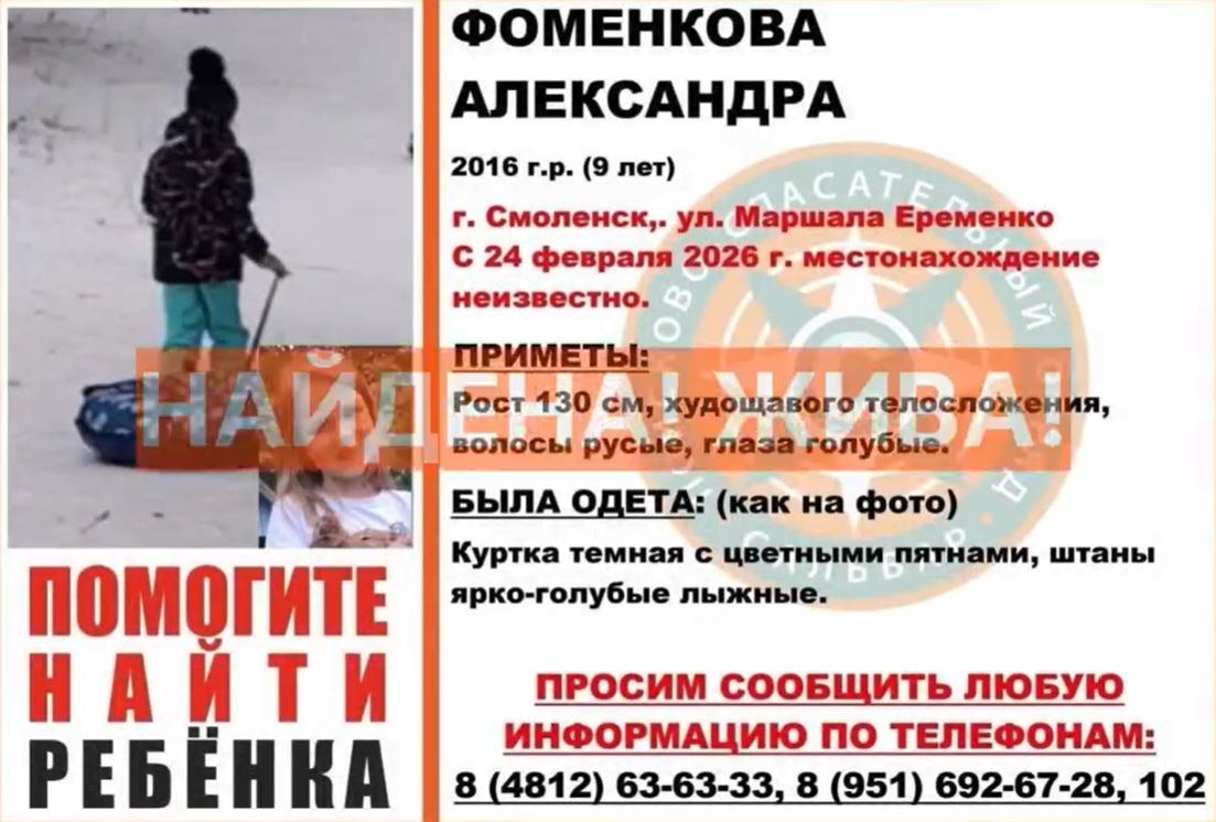 В Смоленске завершилась поиски 9 летней девочки Саши.