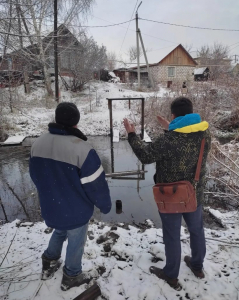 Временный проход к домам по улице 1-ая Загорская на данный момент организован по пешеходному мосту, расположенному по улице 4-ая Мурманская.