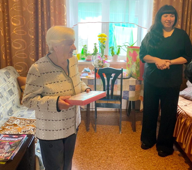 – Анастасия Степановна более 20 лет проработала в городском пассажирском предприятии мойщицей автобусов, оттуда и ушла на пенсию. От имени водителей «Тандем Авто» и ИП «Михеев» мы поблагодарили ветерана за многолетний труд, – рассказала Ирина Загаринская.