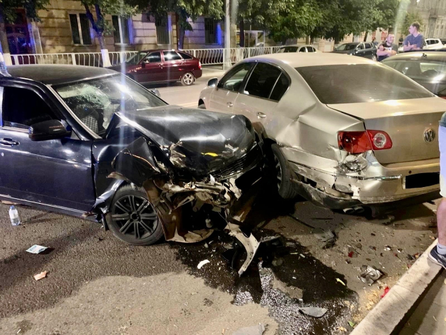 Ранее сообщалось, что поздно вечером около дома №82 по Советской водитель за рулем автомобиля Volkswagen сдавал задним ходом, чтобы припарковаться на свободное место. В этот момент в иномарку и влетела Приора, которая ехала по главной улице города. По иронии судьбы от удара Volkswagen отбросило на другой припаркованный Volkswagen.