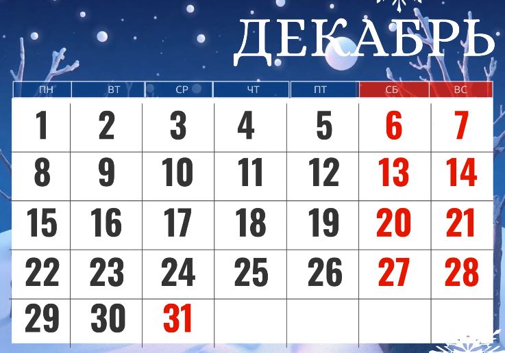 Роструд опубликовал календарь выходных и праздников на декабрь 2025 года. В первом месяце зимы россиянам предстоит ходить на работу 22 дня и девять дней отдыхать. Для сравнения, в ноябре было 19 рабочих дней и 11 выходных. Зато в декабре, перед новогодними праздниками, которые продлятся 12 дней, нас ожидает рабочая неделя продолжительностью всего два дня.