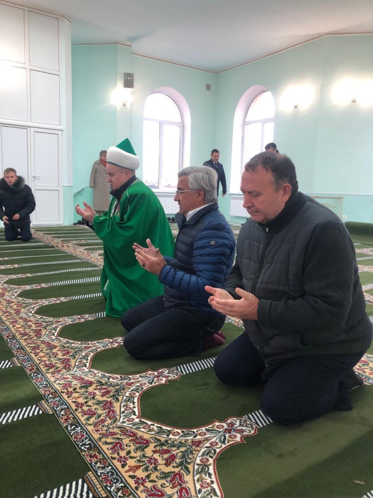 Почетных гостей встретили глава города Сергей Володченков и главный имам Соборной мечети Илгизар Сагдеев.