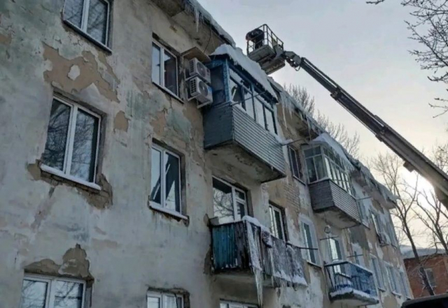 Обильные снегопады и начавшаяся оттепель стали причиной образования многочисленных сосулек на крышах домов и козырьках балконов. В некоторых местах, особенно на скатных кровлях, наросли глыбы смерзшегося снега. Возросла опасность падения наледи.