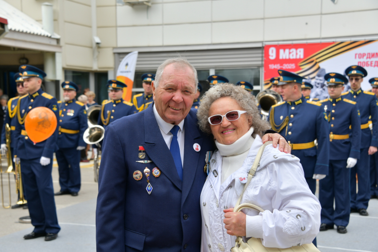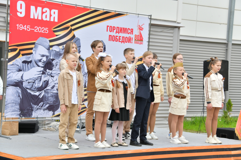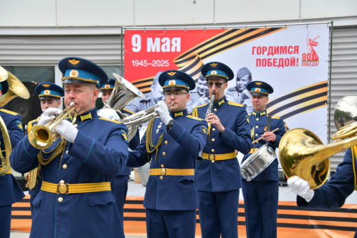 А 7 мая, накануне самой важной даты у проходной завода состоялось праздничное мероприятие, которое можно назвать «Музыка Победы»: играл духовой оркестр и звучали песни на патриотическую тематику.
