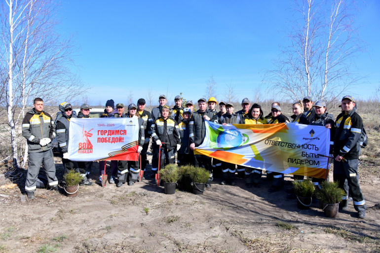 Сотрудники Сызранского нефтеперерабатывающего завода (дочернее общество «Роснефти») приняли активное участие в экологической акции, приуроченной к празднованию 80-летия Великой Победы. Работники предприятия высадили три тысячи молодых сосенок и березок в Рачейском лесничестве Сызранского района, неподалеку от села Старая Рачейка. Молодой лес станет напоминанием о бессмертном подвиге советского народа в Великой Отечественной войне.