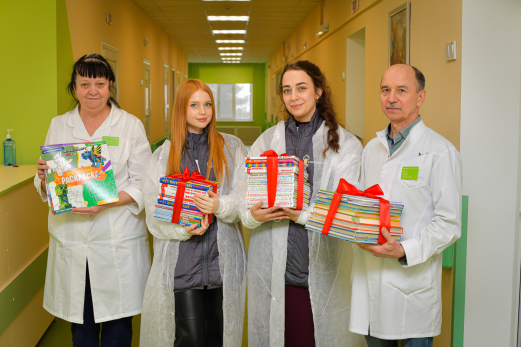 Маленьким пациентам больницы волонтеры подарили около 200 подарков: детские книги с красочными иллюстрациями, развивающие пособия, раскраски, карандаши и фломастеры. За пять лет, благодаря заводчанам, в детских отделениях ЦГРБ сформировалась своя мини‑библиотека, которая теперь пополнилась новой литературой. Найти книгу по душе сможет каждый. Среди подаренных книг и приключенческая литература для подростков, и произведения из школьной программы, и добрые сказки, которые любят дети.