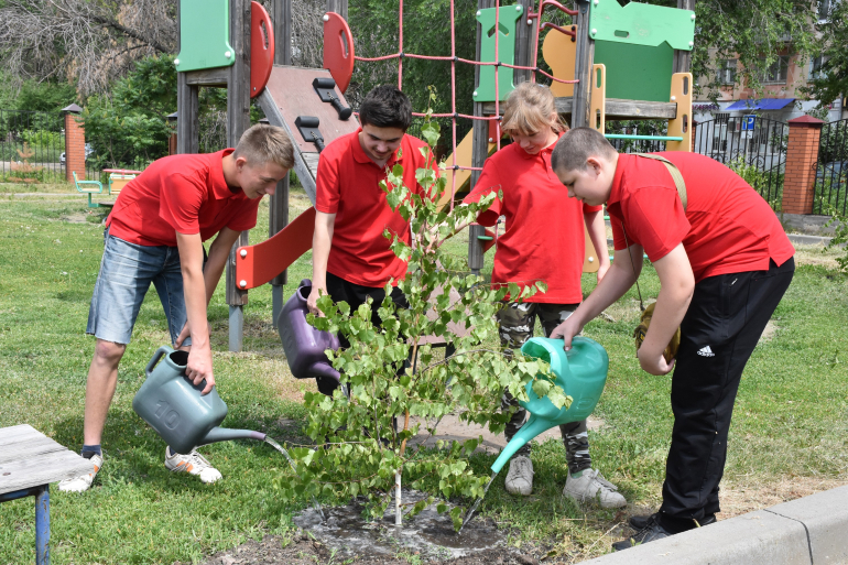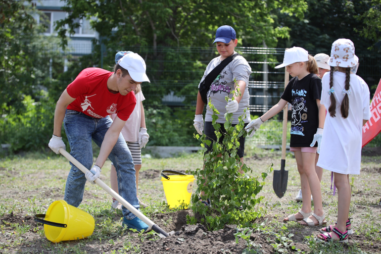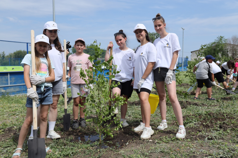 На территории образовательных учреждений города волонтеры предприятия высадили 80 берез, символизирующих 80-летний юбилей Великой Победы.