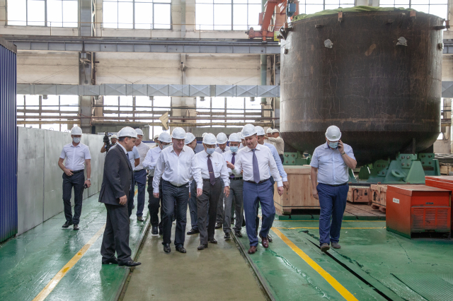 В ходе визита в Сызрань представительная делегация побывала в основных производственных цехах. Генеральный директор Тяжмаша Андрей Трифонов познакомил гостей с производством различного оборудования для АЭС в Китае, Индии и Турции, а также с механической обработкой элементов транспортного шлюза для АЭС в Бангладеш. По заказу АО «Атомстройэкспорт» для египетской электростанции предприятие поставляет мостовые электрические краны для четырех энергоблоков, а уже через год начнется отправка устройств локализации расплава.