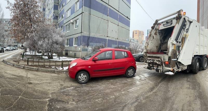 В Сызрани мусоровоз подбил припаркованный в спальном районе легковой автомобиль. Инцидент произошел 30 января на юго-западе города,