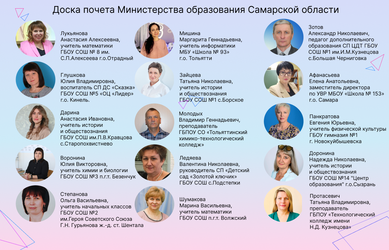 Названы имена педагогов и наставников, номинированных на доску почета министерства образования Самарской области в марте 2025 года. От Западного управления регионального Минобра лучшей стала учитель истории и обществознания сызранской школы №14 - Надежда Доронина.