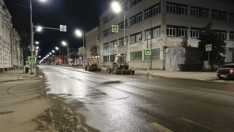 За последние несколько дней уборочные работы проводились на улице Интернациональной, улице Котовского, улице Охотной, на кольцевых развязках Юго‑Западного района, а также на улицах Декабристов, Ульяновской и Советской.