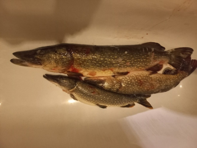 Три поклевки и все реализованы. В итоге домой рыбак принес больше 13 кг рыбы. Ему попались три щуки, одна из них весила 7 кг 700 грамм. Ее молодой человек отдельно запечатлел на фото в качестве своего трофея. С ней рыбаку пришлось особенно помучиться, ведь она никак не лезла в лунку. В итоге вытащить эту солидную щуку все же удалось.