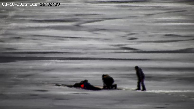 На кадрах двое мужчин шли след в след по доске, а третий подполз к провалившемуся рыбаку. Мужчина из последних сил цеплялся за кромку льда. Его удалось зацепить доской и подтащить на более твердый лед. В итоге все завершилось благополучно. Рыболов только изрядно промок в ледяной воде.