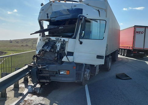 В результате ДТП пострадал 21-летний водитель «Мерседеса». Оба грузовика получили серьезные повреждения - у одного смята кабина, у другого поврежден полуприцеп.