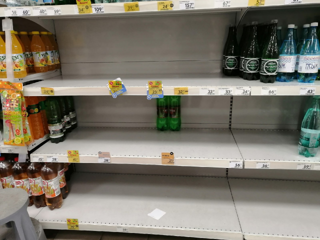 - На Образцовской площадке нет питьевой негазированной воды, от слова совсем. Люди ругаются в супермаркетах. Обошел весь микрорайон. На Монгоре в "Пятерочках", "Магнитах" и "Перекрестке" уже и полторашки трудно отыскать, стоит только газированная вода, - передает наш журналист.