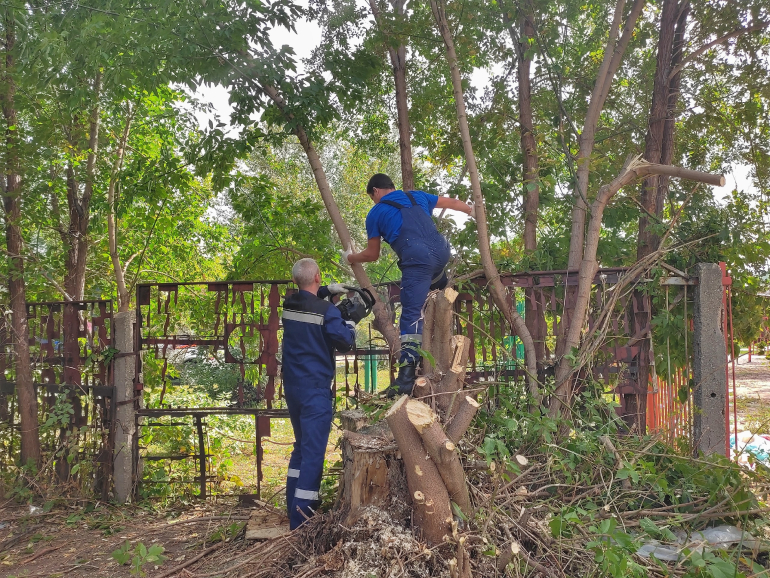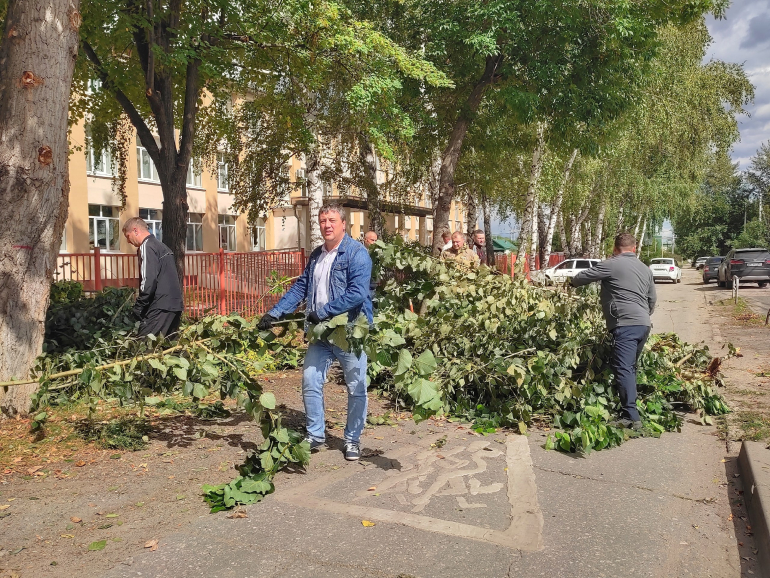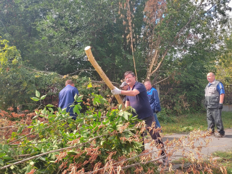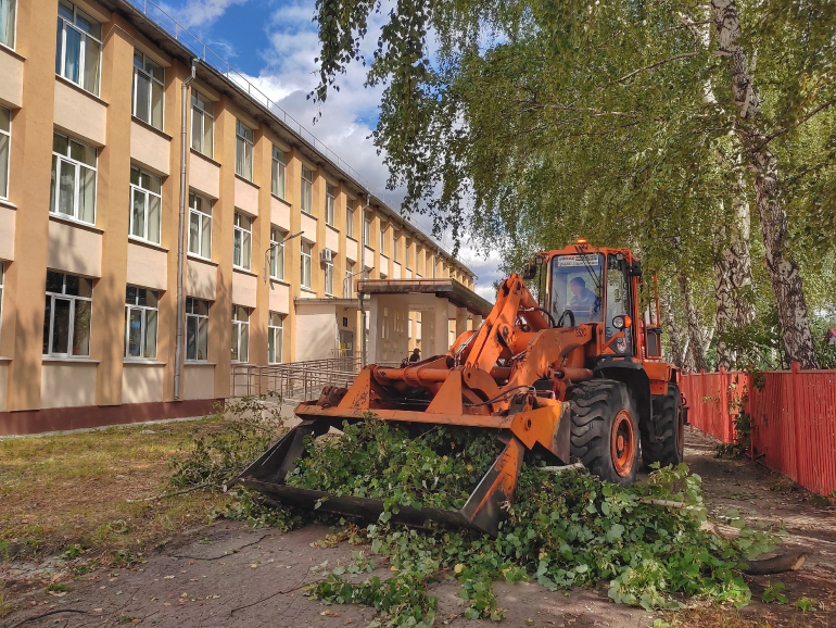 Работники муниципальных предприятий, засучив рукава, занялись уборкой аварийных деревьев и дикорастущей поросли. Учитывая, что только зданию 29 школы почти 70 лет, то и многие деревья, растущие у школы - долгожители или просто аварийные, а значит - источники реальной опасности для жизни и здоровья детей.