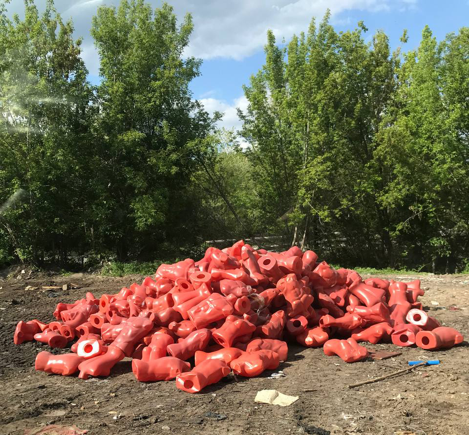 В Сызрани неизвестные выбросили целую гору торсов от человеческих манекенов. Несанкционированную свалку из пластмассовых туловищ обнаружили очевидцы в районе пьяной дороги около старого городского кладбища.