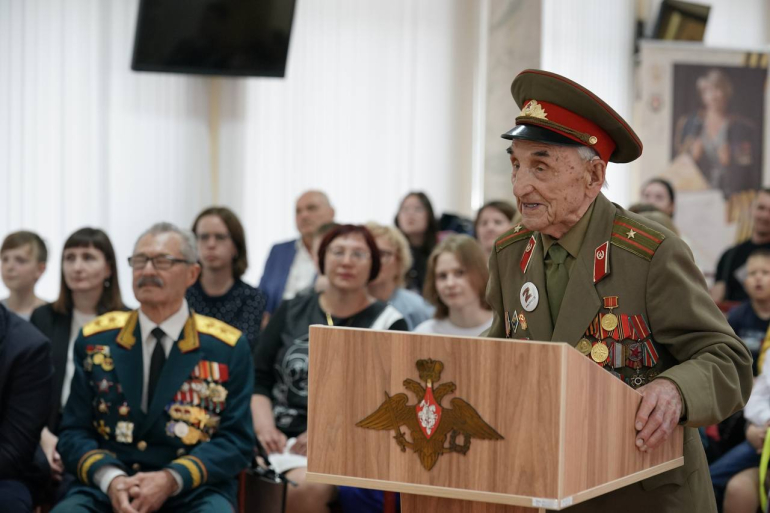 - Дорогие, родные наши ребята. Я ветеран Великой Отечественной войны, мне 96 лет. Будь я помоложе, был бы с вами тоже. Вы выполняете очень ответственную священную задачу - защищаете нашу Родину, матушку Россию, и наш миролюбивый народ. Я очень рад с вами встретиться. Мы гордимся вами, тем, что вы достойно продолжаете славные боевые традиции нашего военного поколения. Мы вас поддерживаем, мы вам верим и надеемся, что вы одержите победу, ведь наше дело правое. Всем солдатам и командирам - ежедневно днем и ночью вести боевые действия без потерь, а потом вернуться домой, - пожелал он военнослужащим.