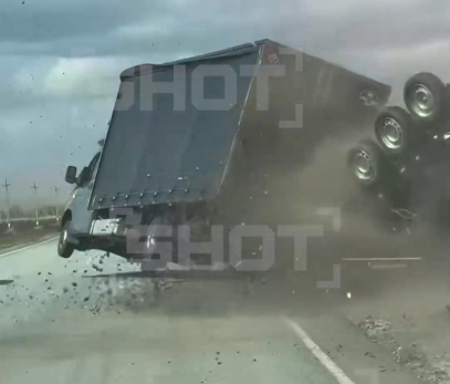 В Самарской области из‑за экстремально сильных порывов ветра опрокинуло грузовик с прицепом. Как передает Shhot, ДТП произошло на федеральной трассе М5 в районе Утевки.
