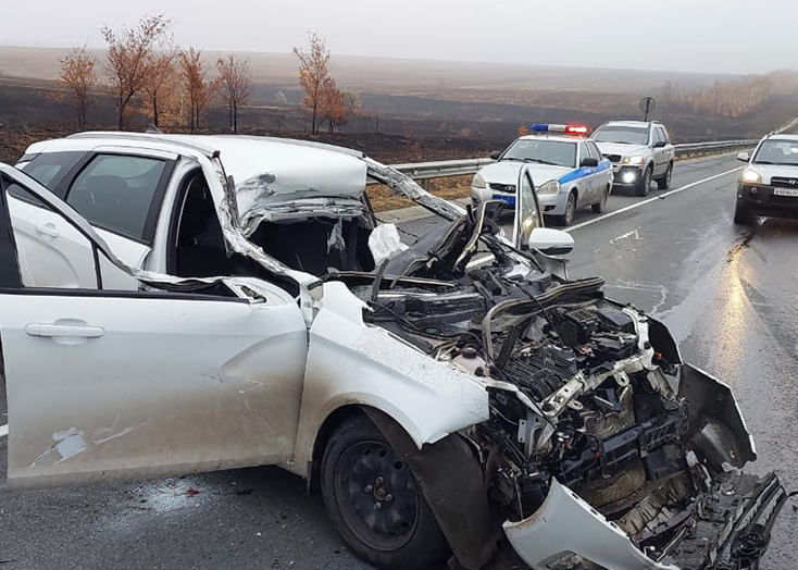 По предварительным данным, водитель «Весты» уснул за рулем и влетел в попутную фуру из Оренбургской области. В результате удара у вазовского авто снесло часть крыши. 51-летний водитель «Лады» с открытой черепно-мозговой травмой был госпитализирован.